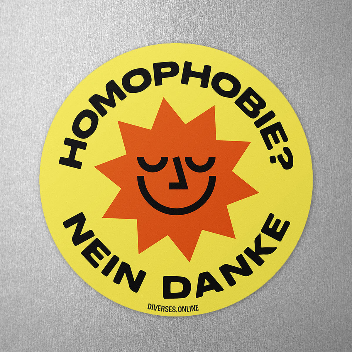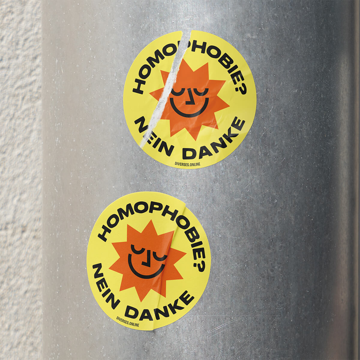 In diesem Set sind 10 "Homophobie? Nein Danke" Aufkleber mit einem Durchmesser von 8cm enthalten.