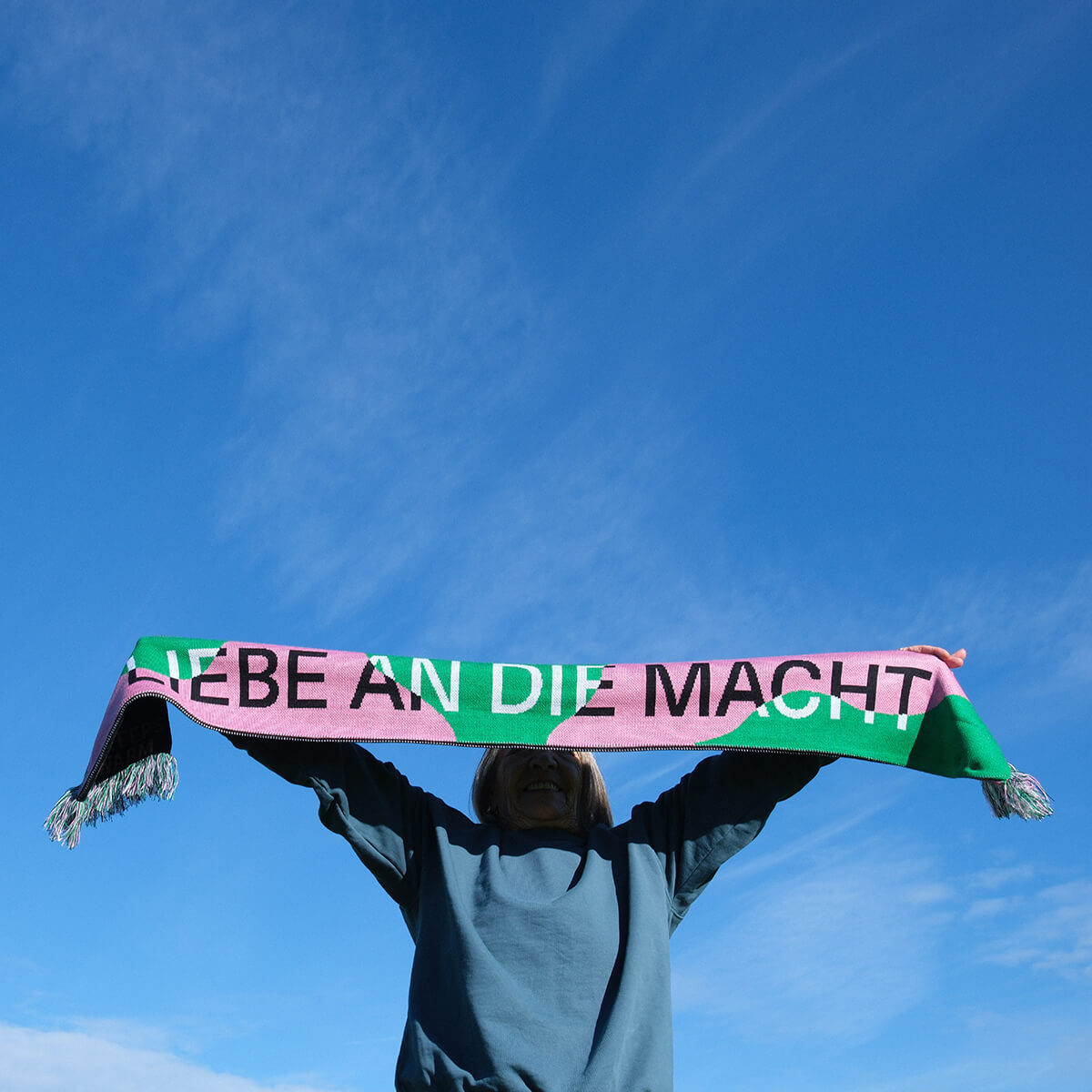 Macht nicht nur warm ums Herz, sondern auch um den Hals. Vorhang auf, für den "Liebe an die Macht Schal"!